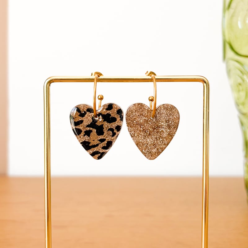 Boucles d’oreilles Stéphanie – réversible – Léopard doré et doré