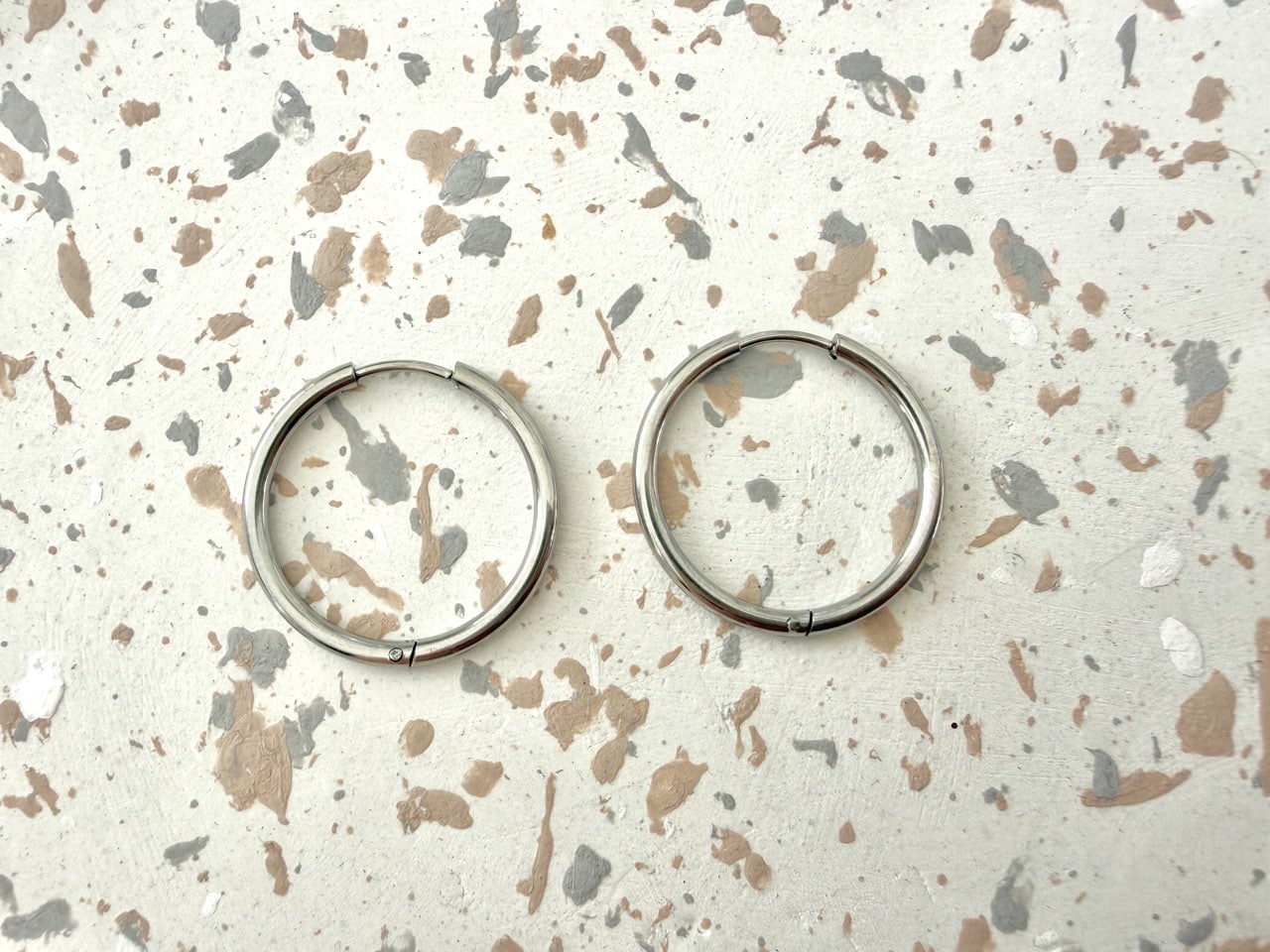 Créoles rondes argentées au style sobre et élégant. Parfaites pour un look minimaliste ou pour y ajouter des pampilles selon vos envies.