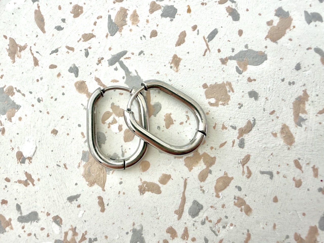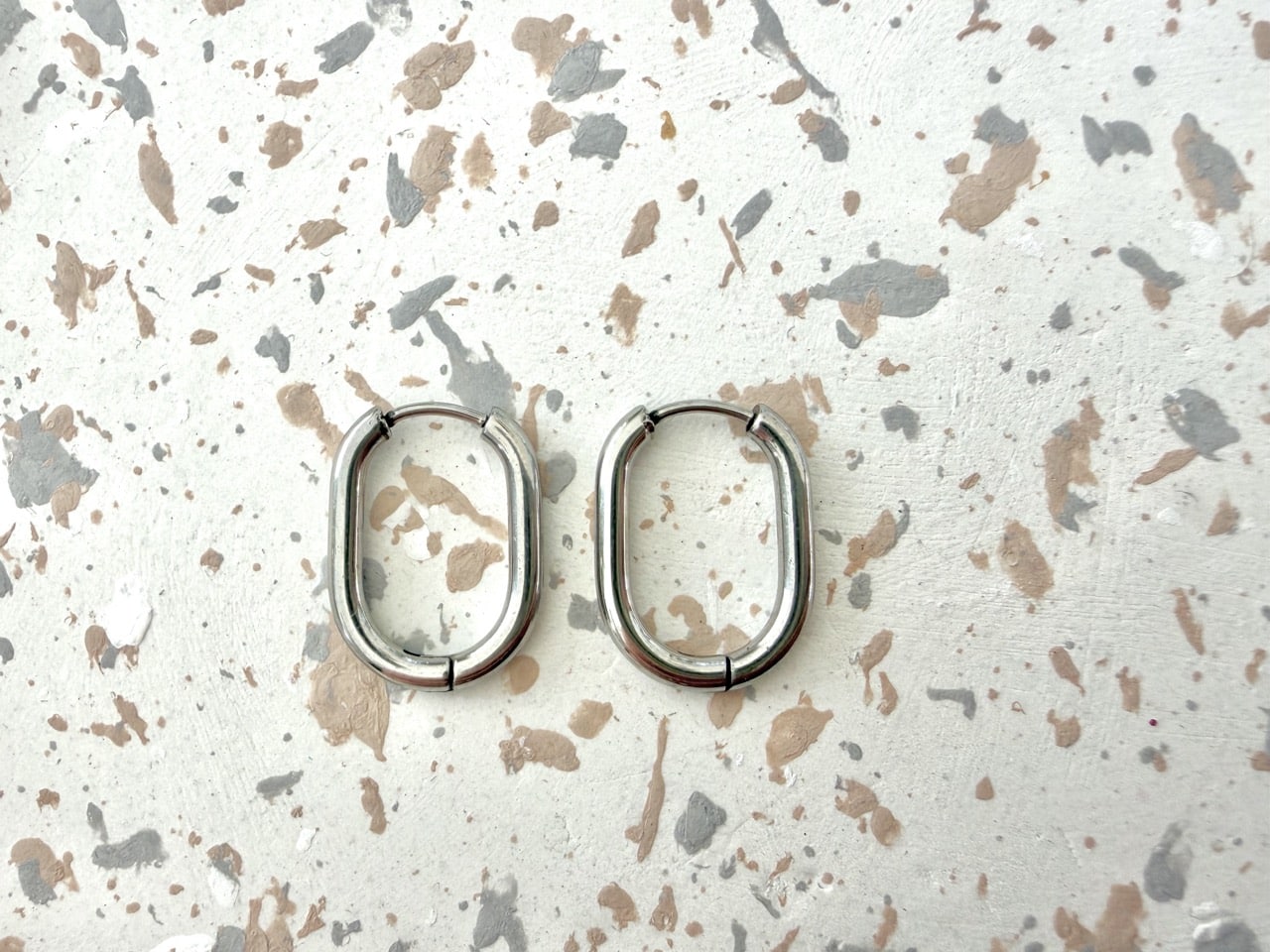 Créoles ovales argentées, au design contemporain et léger. Un modèle polyvalent, à porter seul ou à associer avec des pampilles.